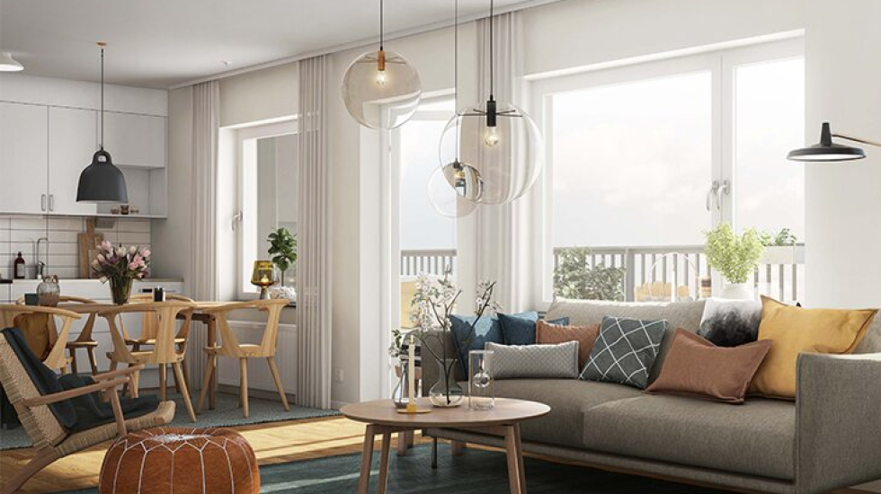 Det finns flera gemensamma utrymmen på Ginstgården som vardagsrum, matsal, kök och tvättstuga. Blå rummet kan även bokas för olika privata festligheter och arrangemang.
