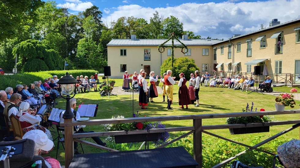 Vi firar alla högtider med mat, musik och underhållning. Exempelvis har vi alltid luciatåg och till midsommar dansar folkdansare hos oss!