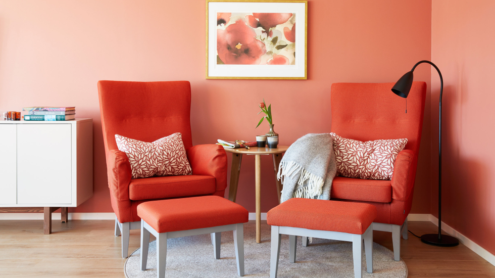 Villa Vallonen är möblerat utifrån Vardagas boendekoncept med fokus på nordisk design. Här kombineras funktion och form till en boendemiljö som är anpassad för de boendes fysiska behov samtidigt som miljön är ombonad och hemtrevlig. Färger och inredningsdetaljer är med grund i forskning och evidens anpassade till det åldrande ögat och underlättar för personer med demenssjukdom att orientera sig på boendet.