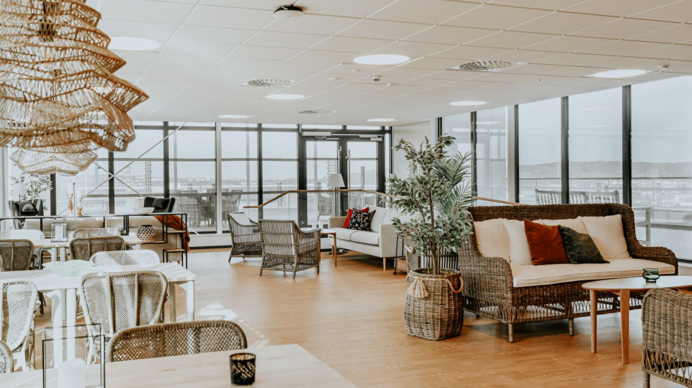 I byggnaden finns en restaurang/cafe som är öppen för allmänheten. Det ska vara en trygg och inbjudande atmosfär där man njuter av god mat, trevlig miljö och gemenskap. Tanken är att det kommer skapas möten och en mer levande miljö.
