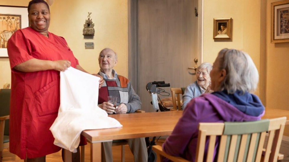 Merparten av våra anställda är undersköterskor. Vi har tillgång till omvårdnadspersonal dygnet runt. Städning av lägenheterna utförs av specialutbildad städpersonal.