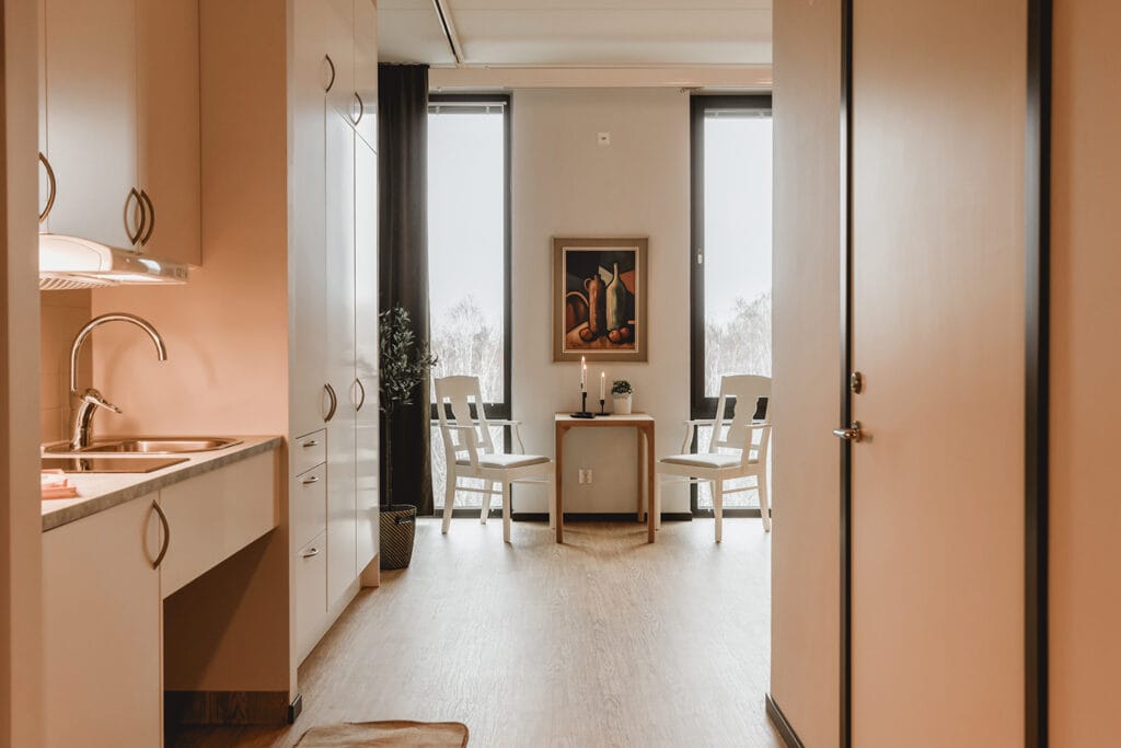 Lägenheterna är ljusa, moderna och välplanerade medextra högt i tak och utformade för att möjliggöra ett självständigt och komfortabelt liv. Varje lägenhet har kokvrå med kylskåp och induktionshäll som möjliggör lättare matlagning. Badrummen är helkaklade och utrustade med japanska toaletter. I alla lägenheter finns en garderobsvägg, stora fönster och en smart-TV monterad på väggen.