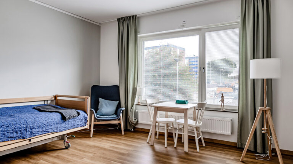 Din egen lägenhet är ca 31 kvadratmeter och utrustad med kylskåp och flera garderober. Badrummet är handikappanpassat med dusch och toalett. Trygghetslarm och rörelselarm finns. Lägenheten har en höj- och sänkbar säng, i övrigt möblerar du med dina egna möbler och saker.