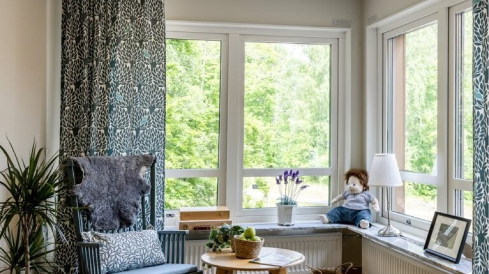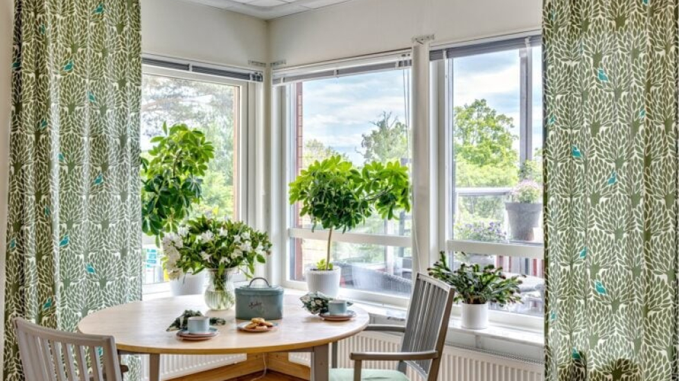 På Villa Vårbacka arbetar vi med natur som tema. Det är något som genomsyrar allt från inredning till våra aktiviteter. Speciellt märkbart är det i våra gemensamhetsutrymmen där vi har gjort vårt bästa för att flytta in naturens element i inomhusmiljön. Här vistas boende och besökare i en miljö där de känner avkoppling och närhet till vattnet och naturen.