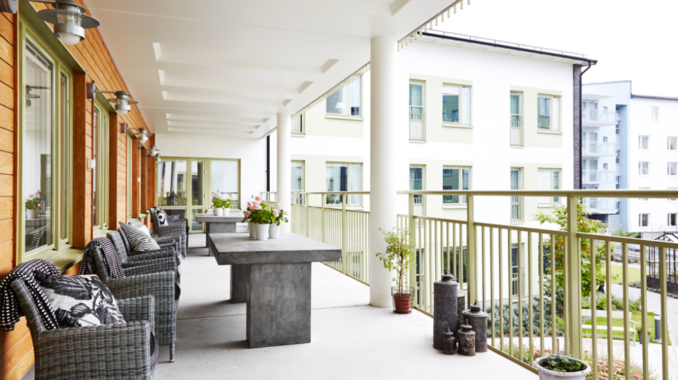 Ett hem med hotellkänsla med omsorg, hälso- och sjukvårdsinsatser