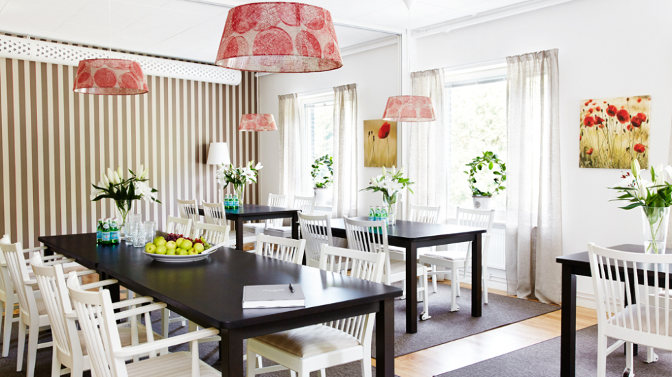I hela inredningen finns en röd medveten tråd där det vackra och funktionella går hand i hand. Färger och inredningsdetaljer har sin grund i forskning och är evidensanpassade till det åldrande ögat för att underlätta för personer med demenssjukdom att orientera sig på boendet.