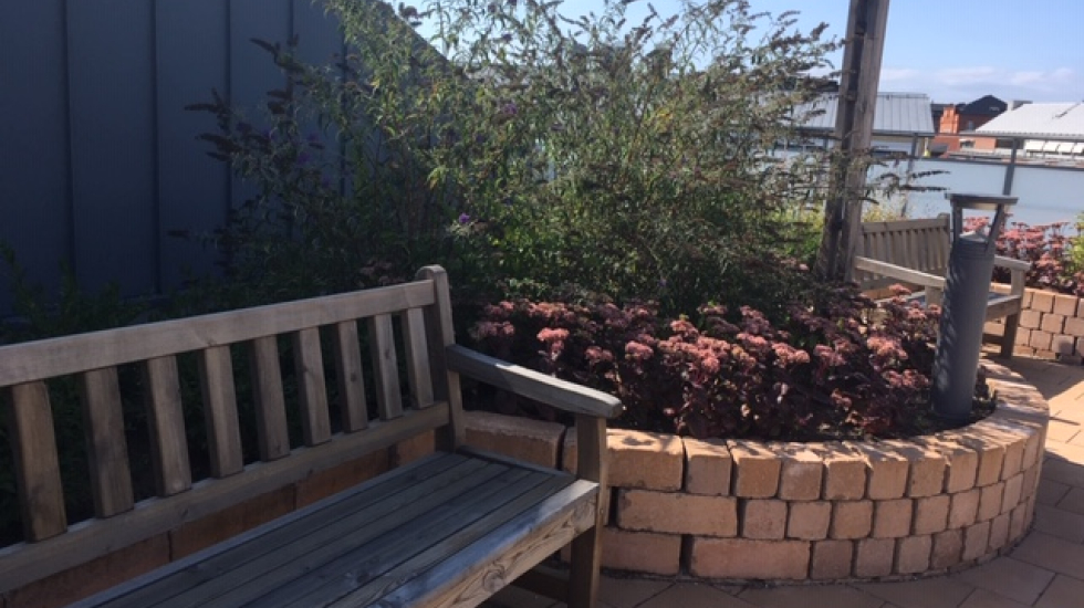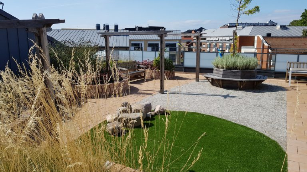Varje avdelning har ett gemensamt kök och trivsamma utrymmen för samvaro och måltider. Det finns gemensam uteplats som en takterrass på fjärde våningen.