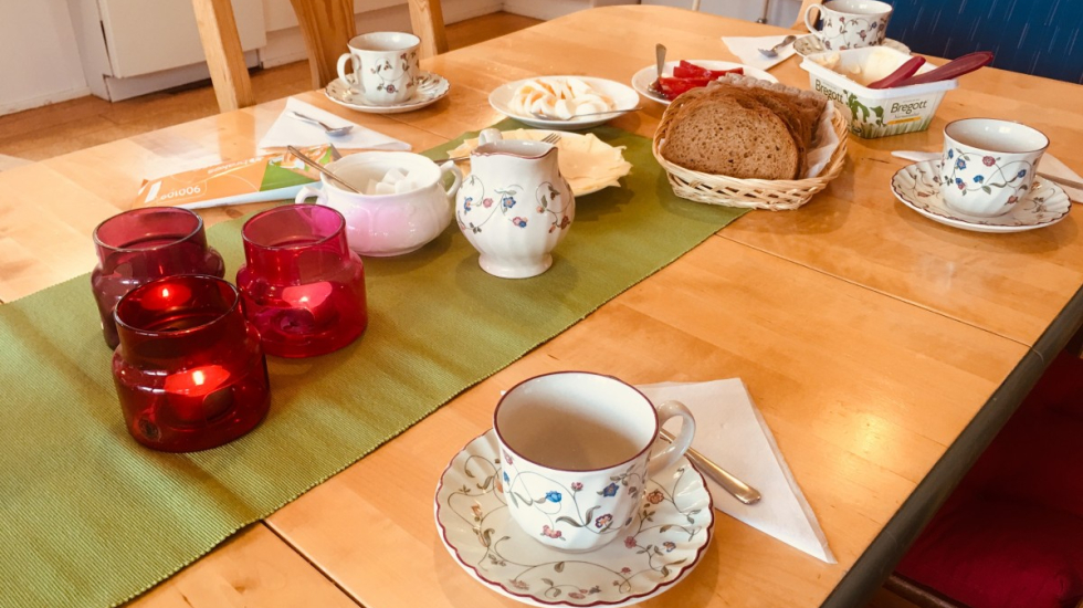 Frukost serveras på respektive våning. Lunch och middag avnjuter vi gärna tillsammans i vår gemensamma matsal. Självklart kan man välja att äta måltider i sin egen lägenhet.