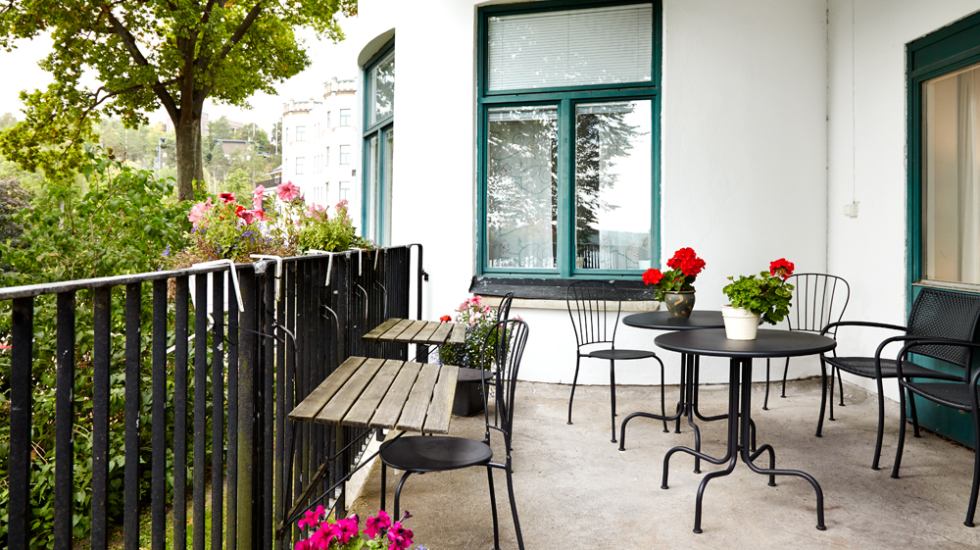 Varje avdelning har ett gemensamt kök samt trivsamma och vackra utrymmen för samvaro och måltider. Det finns gemensam uteplats och balkonger. Vår salong och matsal är möblerade med tidstypiska möbler och konst.