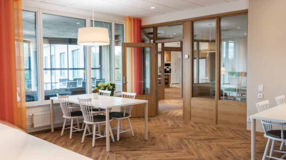 Boendet har ett fantastiskt läge bara ett stenkast från hamnpromenaden och havet, med utsikt mot Norrtäljeviken från trädgården. Från samlingssalen och dess takterrass har du utsikt över staden. Förutom en gemensam samlingssal och en takterrass finns det även ett aktivitetsrum, gym/rehab samt en bastu.