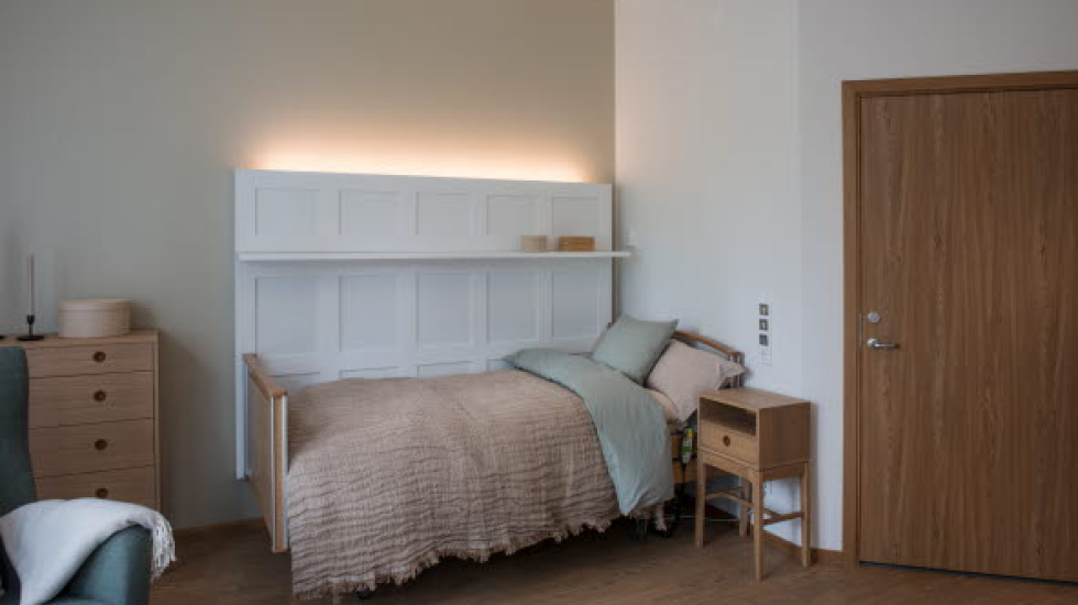 Varje avdelning består av tio lägenheter. Varje lägenhet är cirka 31 kvadratmeter. I varje lägenhet finns det en höj -och sänkbar säng, platsbyggd garderob, kokvrå med liten kyl och frysfack, handikappanpassat badrum och en TV. Varje lägenhet har även en sänggavel med inbyggd belysning som tänds vid rörelser mot golvet, till exempel när du sätter ned fötterna från sängen för ett toalettbesök nattetid. Allt detta ingår givetvis i hyran.