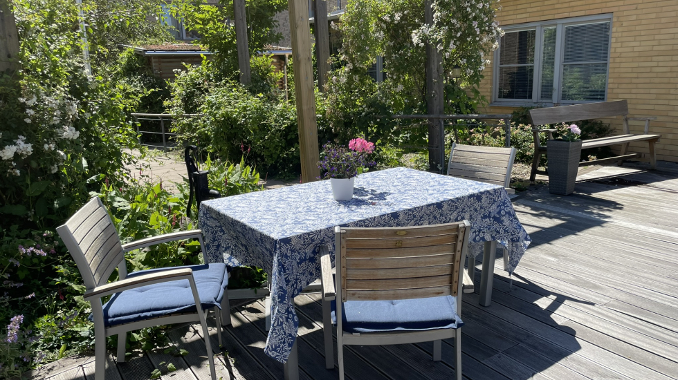 Hos oss bor du om du har en demensdiagnos eller om ett stort fysiskt omvårdnadsbehov. Här kan du njuta av den härliga innegården med blommor, bärbuskar och egna odlingar, eller ta en kopp kaffe och umgås i solen. Varje vecka erbjuder vi även musikunderhållning, gymnastik, promenader, bingo, högläsning och frågesport. Du kan även delta i matlagning, trädgårdsskötsel eller andra vardagsaktiviteter som du tycker om.