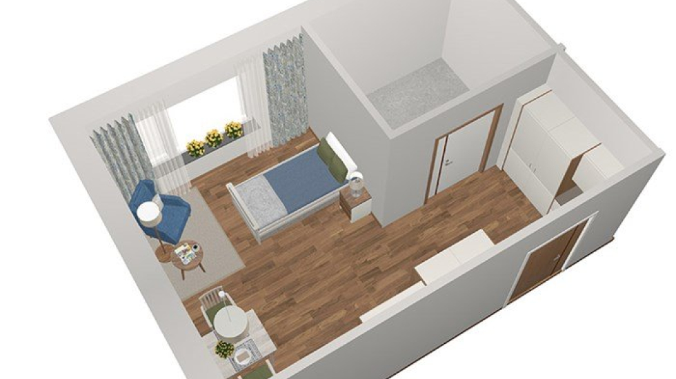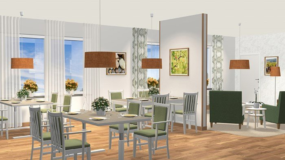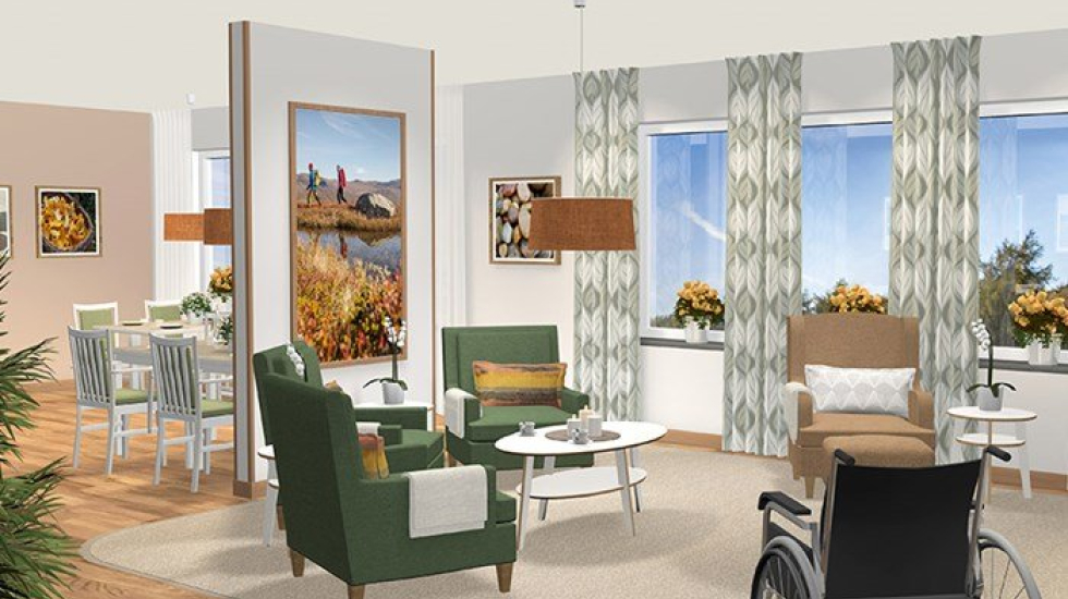 Här finns 54 nya lägenheter, varav 34 lägenheter är med demensinriktning och 18 lägenheter är med vård- och omsorgsinriktning.
