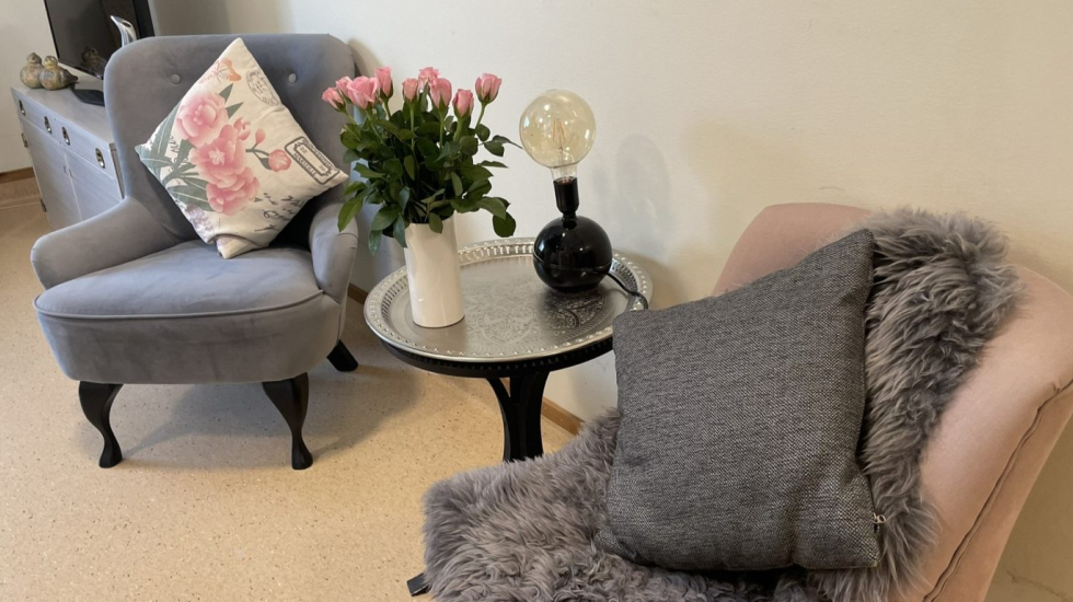 Lägenheterna är ljusa och inbjudande med eget badrum inklusive dusch, samt pentry med litet kylskåp. På varje avdelning finns en gemensam matsal där vi äter tillsammans. Vi har även allrum där vi gör olika aktiviteter, ser på TV eller bara umgås. I din egen lägenhet får du möblera med dina egna möbler och andra kära ting. Säng och madrass ingår men övriga möbler tar du med dig.