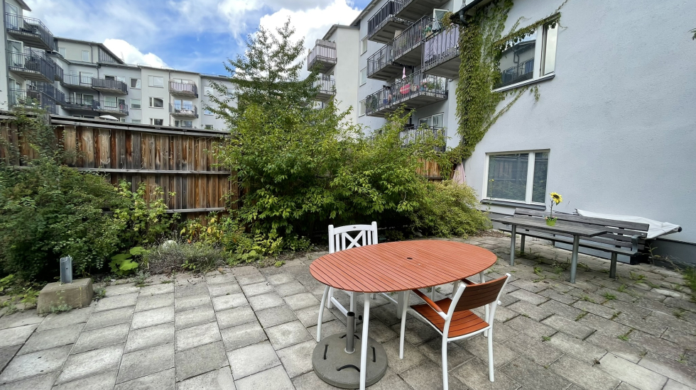 Hos oss kan du njuta av den härliga innergården från balkongen eller vår uteplats, där vi har utsikt över barnen som leker på gården. På innergården dukar vi även upp till grillkvällar med underhållning, eller tar en kopp kaffe och umgås i solen.