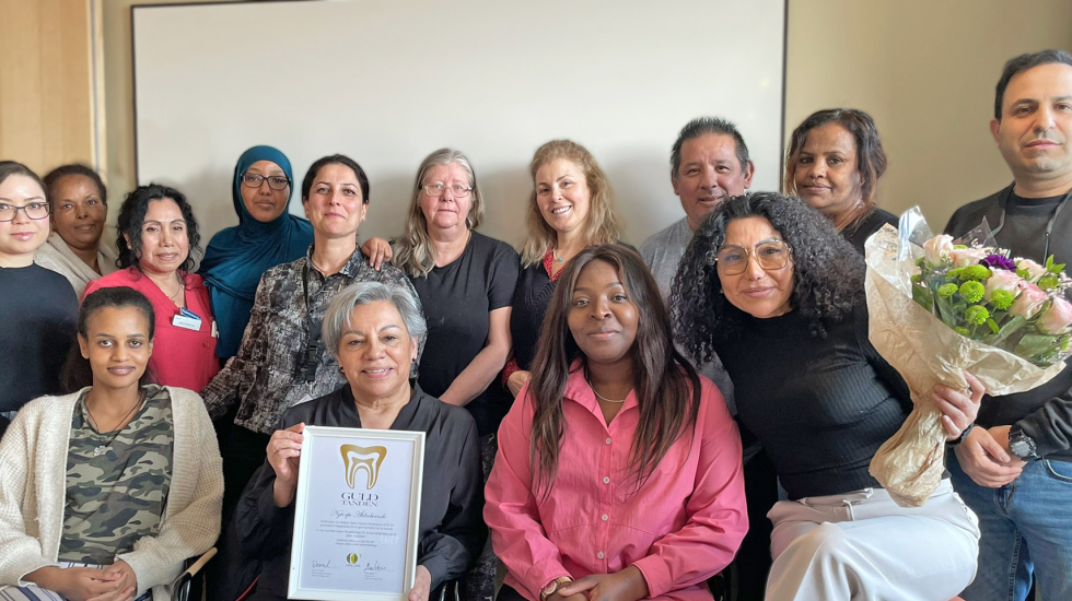 2025 vann vi utmärkelsen Guldtanden, som delas ut av tandvårdsaktören Oral Care, för vårt arbete med munhälsa för äldre.