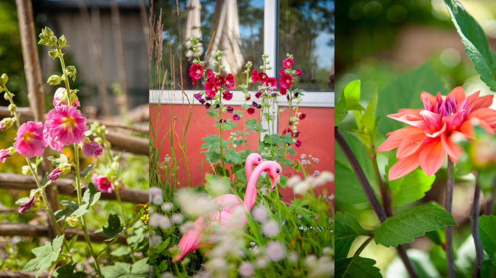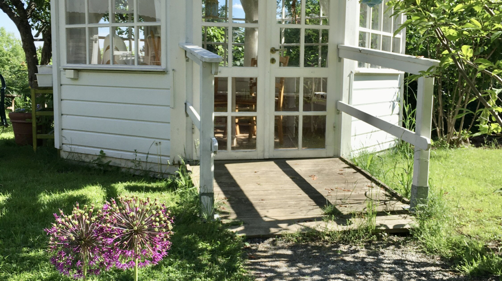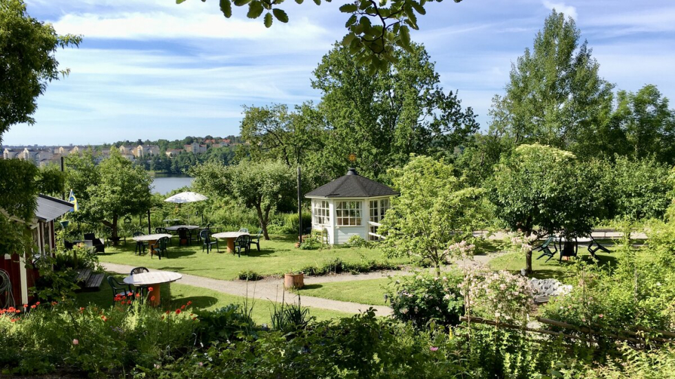 Förutom fruktträd, bärbuskar och andra traditionella växter finns här ett gammalt torp samt ett lusthus. Det finns gott om plats för både soldyrkare och för de som vill ha lite skugga. Om du vill kan du hjälpa till med att ta hand om alla våra plantor. Vid vackert väder serveras eftermiddagskaffe i trädgården eller på terrassen.