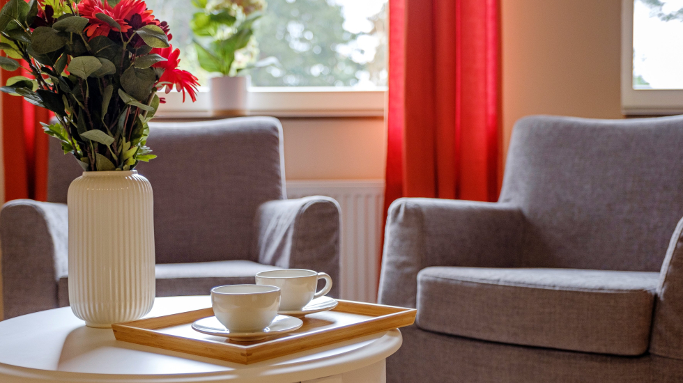 Boendemiljön är utformad av sakkunniga inom demens och kognition (kunskap om hjärnans informationsbearbetning). Material och färger är noggrant utvalda. I vår trädgård har vi lagt extra omsorg på att skapa utemiljöer som är rofyllda och harmoniska, samtidigt som de bjuder in till aktivitet och samvaro.