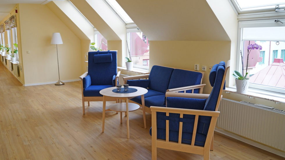Hos oss bor du i egen lägenhet. Vi har nyrenoverade, ljusa utrymmen med plats för gemensamma aktiviteter, TV-tittande och för enskilda samtal. Matsal och kök med öppen planlösning samt intilliggande balkong/uteplats för spontan utevistelse.