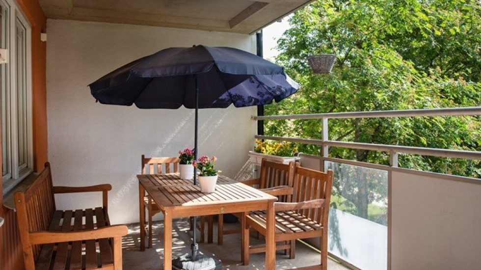 På varje plan finns ett stort kök med matplats och i anslutning finns ett vardagsrum och en stor balkong. I boendets omgivning finns fina promenadstråk, grönområden, affärer och bibliotek. Det är nära till buss och tunnelbana.
