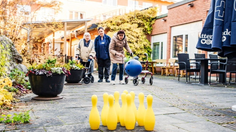 Sjukgymnast och arbetsterapeut finns i huset två dagar i veckan