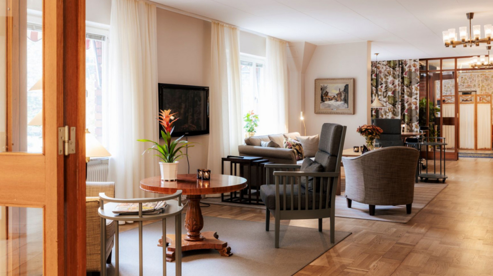 Vår utemiljö består av soliga uteplatser, vacker trädgård och en park med fruktträd, boulebana, och rosenträdgård. Vår inre miljö är präglad av vårt historiska arv. Vi har bibliotek, salong med tv och matsal. Du inreder den egna lägenheten efter tycke och smak. Säng ingår och vi håller också med sänglinne och handdukar. Vi erbjuder även parboende.