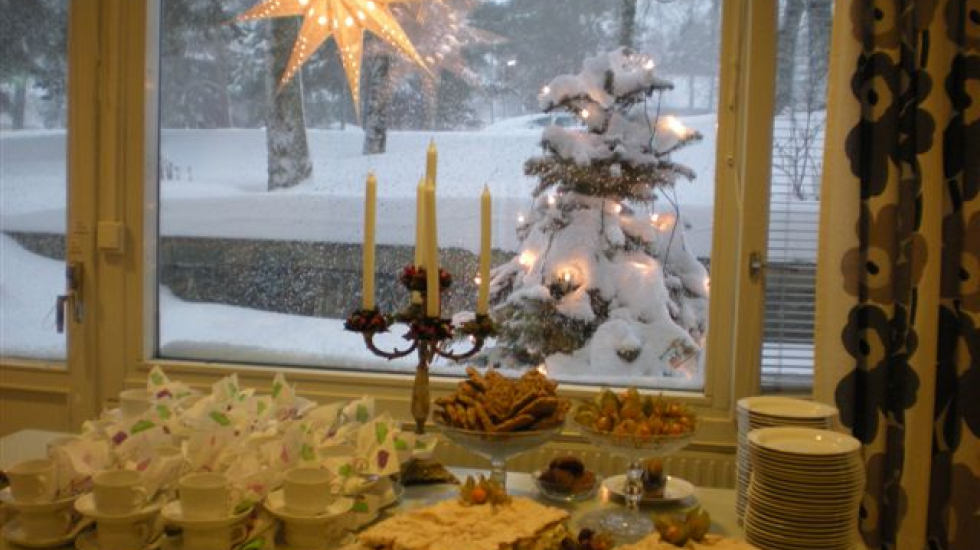 I samband med högtider firar vi på finskt vis i festsalen med tillhörande mat och dryck. Vid påsk är memma ett självklart inslag och vi serverar karelska piroger och munkar som vi ibland bakar själva. Vi ordnar även större sammankomster i festsalen.