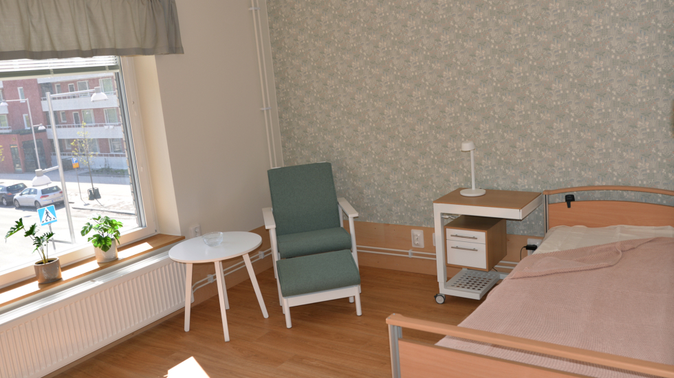 Din egen lägenhet är cirka 30 kvadratmeter och utrustad med kylskåp och möjlighet till kokplatta. Badrummet är rymligt med dusch och tvättmaskin. Lägenheten möblerar du själv efter eget önskemål, förutom sängen som redan finns på plats. En viss hänsyn behöver man ha när det gäller mattor i lägenheten och att inte övermöblera utan att det ska vara lätt för den äldre att ta sig fram.