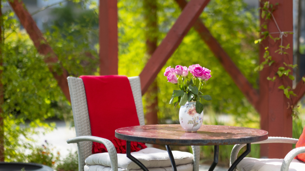 Bällstahof är ett modernt äldreboende med ljusa, fräscha lokaler. På plan ett finns gemensamhetsrummet, Solsidan, som vi använder vid aktiviteter och fest. Utanför ligger vår 650 kvadratmeter stora terrass som bjuder in till utevistelse, aktiviteter och rekreation. Här finns utemöbler, växthus, boulebana, utegym, rabatter och två pergolor. På sommaren brukar vi grilla här.