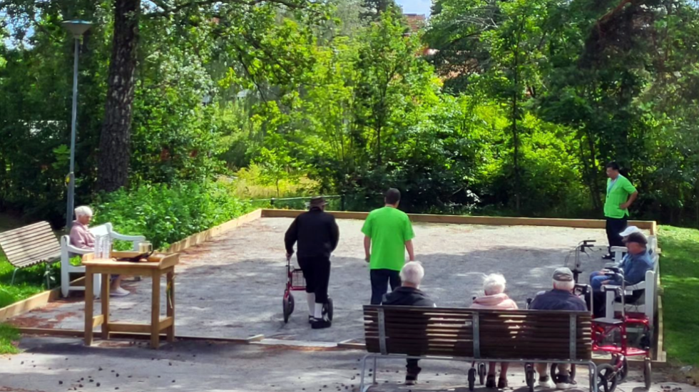 Boendet består av tre byggnader. Mellan husen finns en gård med en liten skogsdunge, gräsmatta och gångvägar med bänkar och trädgårdsmöbler. Vi har en boulebana som även används till att spela krocket.