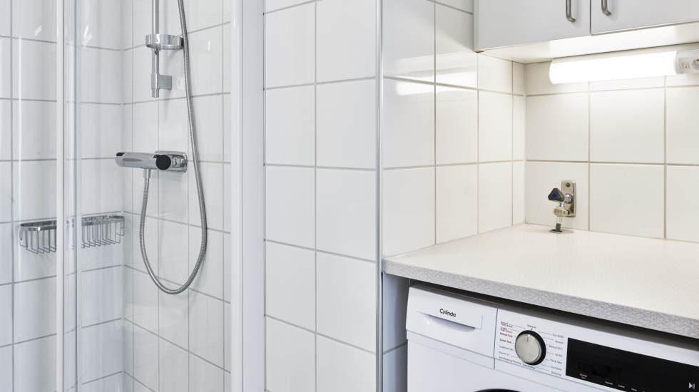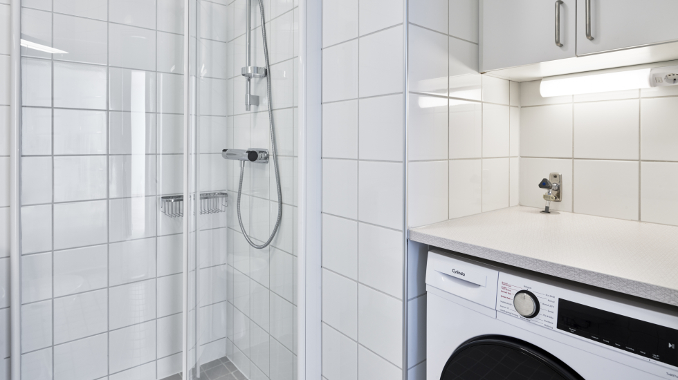 Badrummen är rymliga och fräscha. Här är helkaklat och det finns kombimaskin för tvätt och tork.