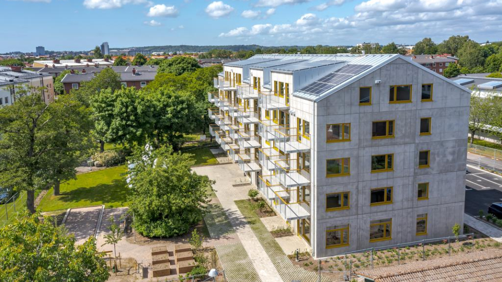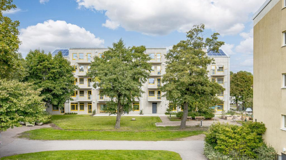 Kvarteret Häggen är miljöklassat enligt Svanen. Det innebär att du får en bostad med en sund inomhusmiljö och hälsosamma material, vilket också har en positiv miljöpåverkan. På taket sitter solceller som bidrar till att minska husets energiprestanda.