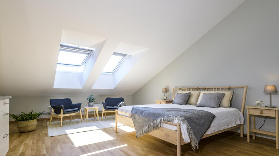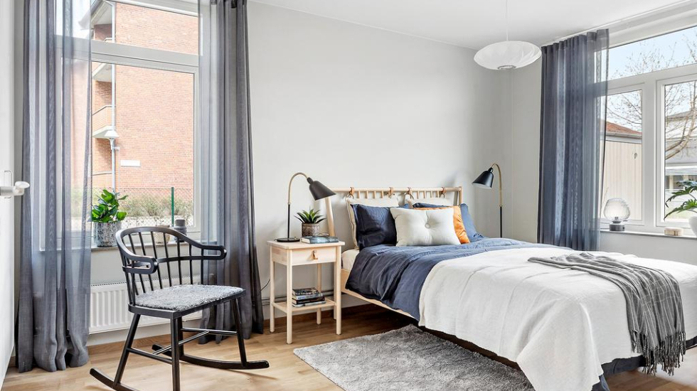 På våning fem finns ett gästrum som kan hyras för långväga nära och kära som vill stanna över natten.
